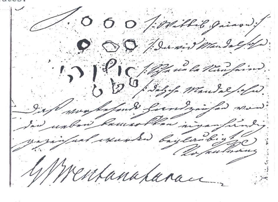 In einem Kaufvertrag von 1818 (Nr. 8) mussten Handzeichen die Unterschrift ersetzen.„daß nebenstehende Handzeichen von den neben Bemerkten eigenhändig gezeichnet worden, beglaubigt – Rosenkranz.“ Zum Unterschied zu seinem Stiefbruder Franz Brentano nannte sich Georg nach seiner Mutter Brentano-Laroche. Im Folgenden bringe ich eine dem Kaufbrief Nr. 80 mit Wöhler beigefügte Erklärung, die wirklich an Genauigkeit in der Vermessung nichts zu wünschen übrig lässt. Leider weiß ich nicht, wo diese Stückchen Land lagen, die Georg Brentano sicher zur Abrundung seines Besitzes brauchte.
