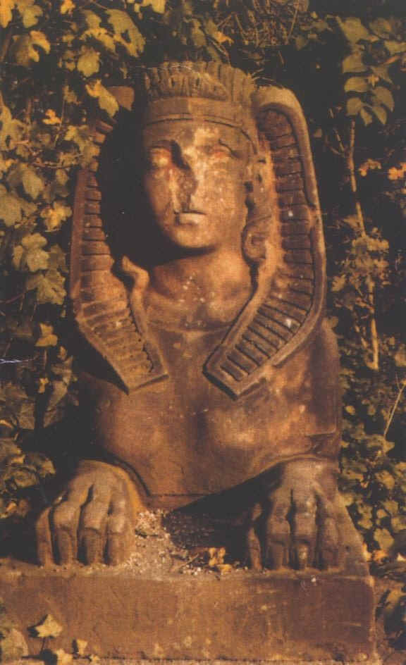 Irgendwo im Park lagern noch immer die Sphinxe. Mit ihren toten Augen scheinen sie in unendliche Fernen zu starren. Die Zeit hat auch sie alt werden lassen. Runzeln durchziehen ihr Gesicht. Grünes wuchert zu ihren Seiten, und wenn die Schere des Gärtners nicht rechtzeitig ansetzen würde, wären auch sie nicht mehr zu sehen. |