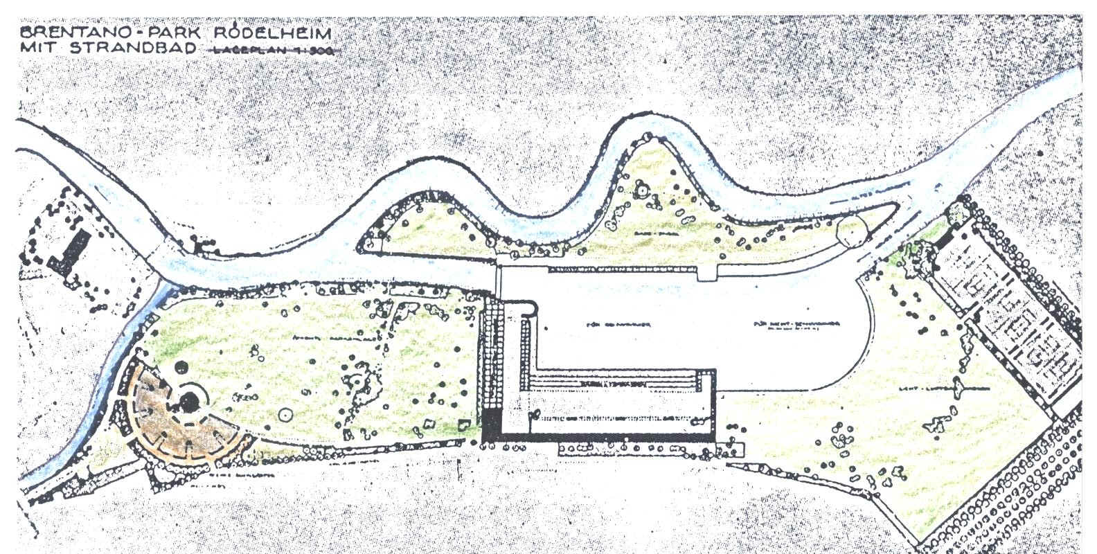 So war das Brentano-Bad 1929 angelegt worden. Aber auch dies ist schon wieder Vergangenheit. Es zeigte sich nach dem Kriege, daß das Niddawasser nicht mehr sauber war. Große Schaumberge trieben auf dem Fluß. Also mußte der Durchstich, der das Niddawasser in das Becken geleitet hatte, wieder geschlossen werden. Schade, vorher hatte man aus dem Schwimmbad hinaus bis nach Hausen schwimmen können. doch hat dies der Beliebtheit des Brentano-Bades keinen Abbruch getan. Immer mehr Parkplätze müssen geschaffen werden. |