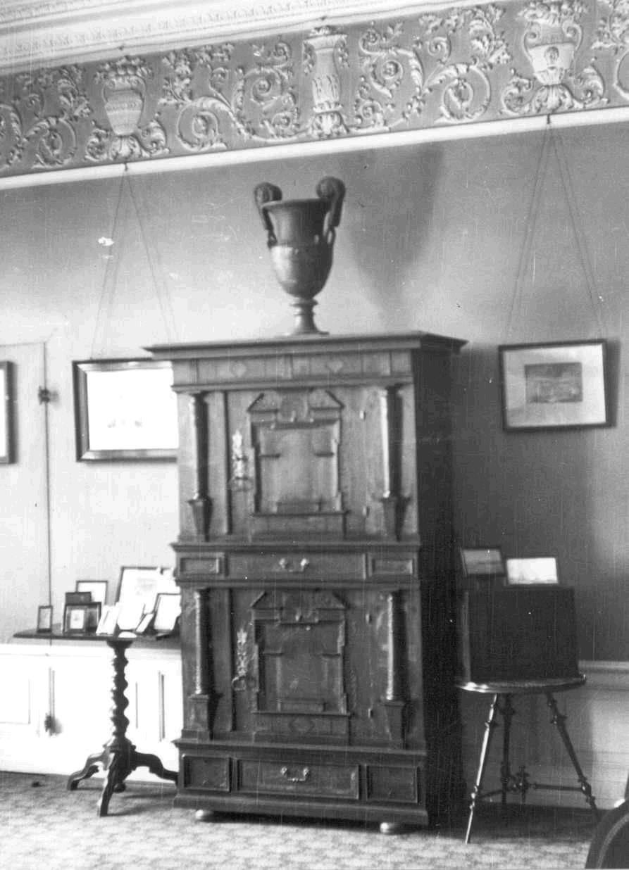 Der Ulmer Schrank, heute noch im Besitz der Familie. Ich glaube, daß er uns allen besonders gut gefiel, wenn auch sein Inneres unpraktisch eingeteilt war, so daß man nur wenig in ihm unterbringen konnte. Einmal fand ich zufällig in ihm einen angefangenen Pullover, der ein Weihnachtsgeschenk meiner Schwester Annemarie für mich werden sollte. Es war gut, daß ich ihn fand, die Farben gefielen mir gar nicht und so konnte ich vorbereitet meine Enttäuschung an Weihnachten besser verbergen. |