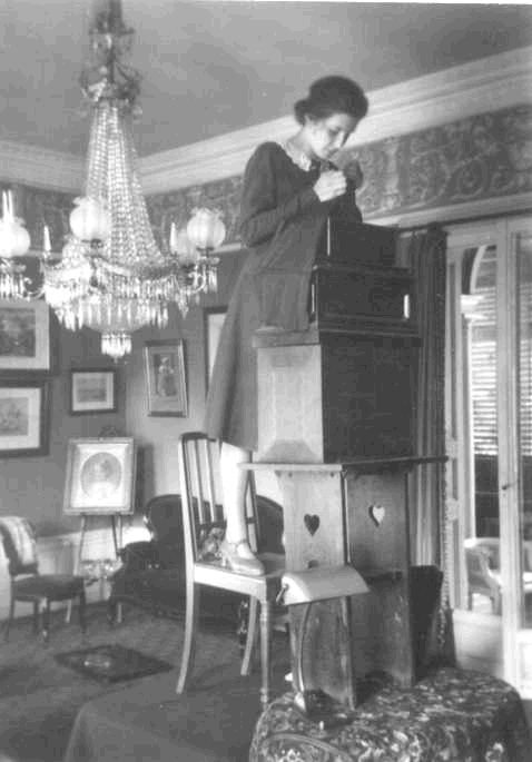 So hoch waren die Räume, daß dieser Aufbau nötig war, um das Bild der Urgroßmutter photographieren zu können.