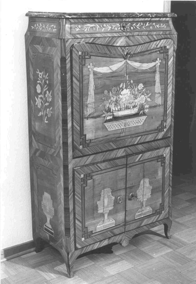 Niemals ist daran gedacht worden, dieses traditionsreiche Stück zu verkaufen. Es wurde gesagt, Goethe habe an ihm sein Buch ‚Die Leiden des jungen Werthers’ geschrieben. Es stimmt, daß Goethe nach der Heirat Maximilianes (am 9. Januar 1774) viel im Goldenen Kopf ein- und ausging. Aber da sein Buch im gleichen Jahr, also 1774, erschienen ist, ist diese Vorstellung kaum haltbar. Vielleicht hat er die Druckfahnen dort korrigiert. Es soll ein Zettel vom Schlüssel des Sekretärs mit der Aufschrift ‚Goethe-Pult’ lange aufgehoben worden sein. Mein Bruder Franz-Josef hat den Sekretär geerbt. |