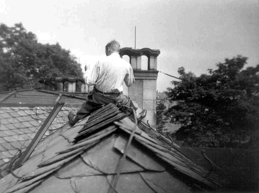 Ludwig Krohmann auf dem Dach unseres Hauses *)